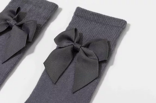 Kniekousen met strik donkergrijs