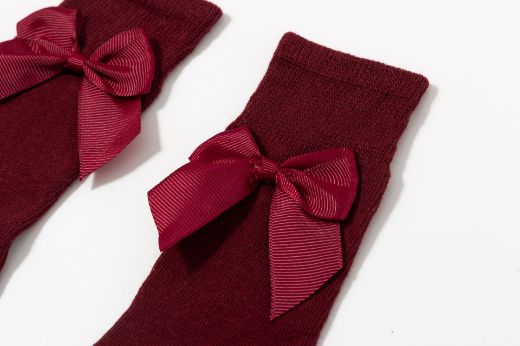 Kniekousen met strik maroon