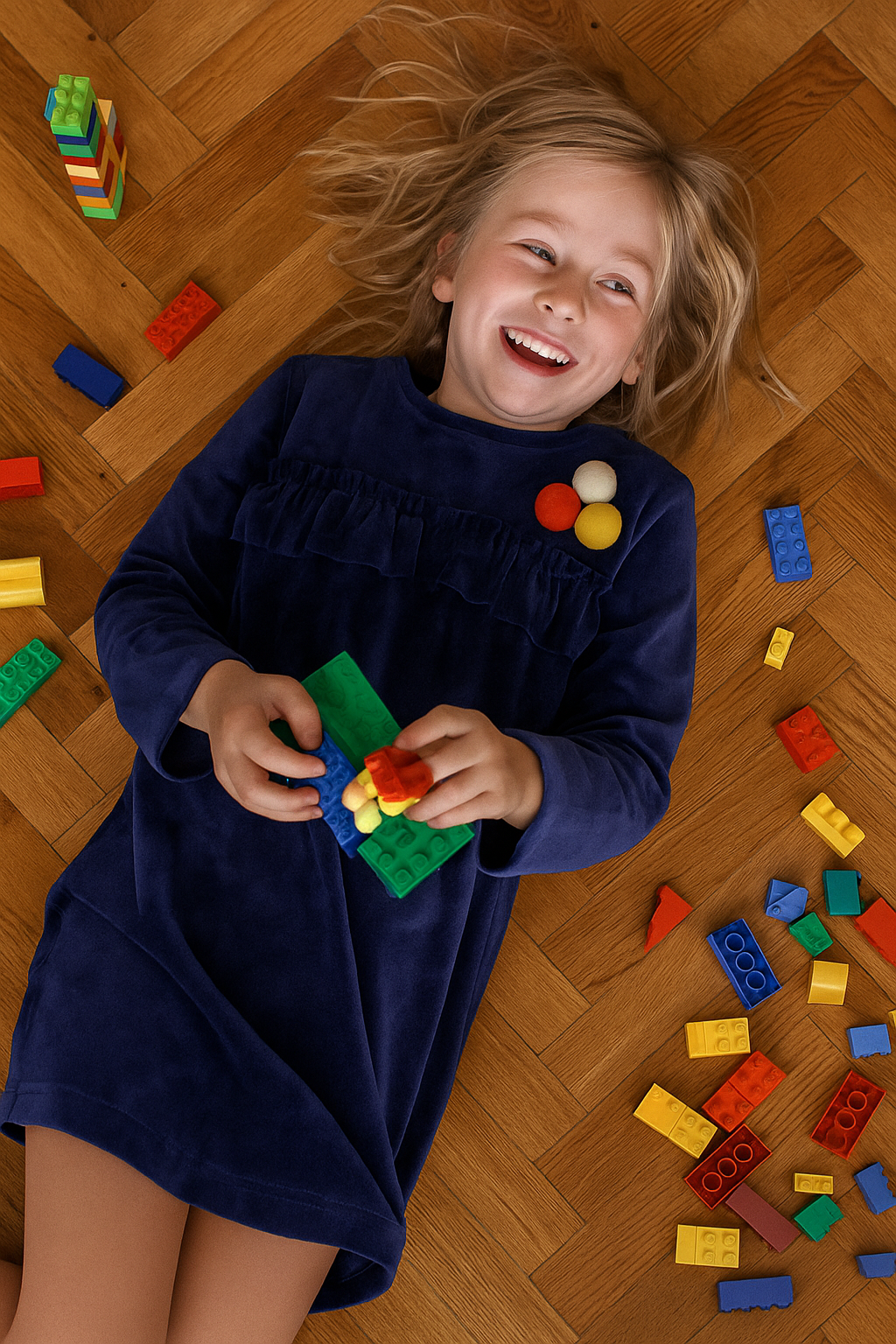 Fluwelen jurkje met leuke pomponnetjes